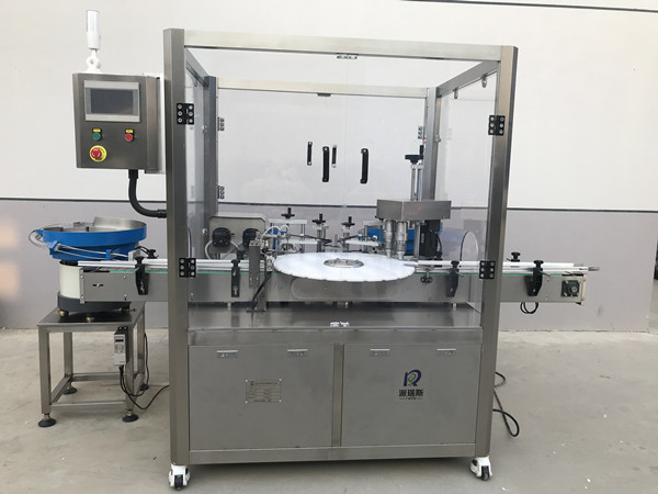 5. Cap loading station: caps will be sorted under vibrator and drop on the mouth of Bottle one by one.